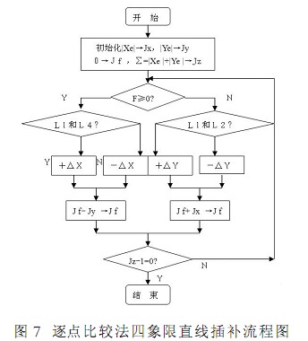 由此設計出四個象限內直線插補的通用軟件流程圖如圖 7 所示