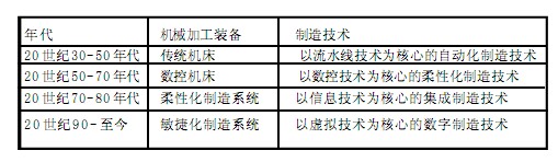 從表1 列出的各個時期的機床技術(shù)與制造技術(shù)可以看到,機械加工裝備對促進制造技術(shù)發(fā)展的緊密關(guān)系和重要支撐作用。