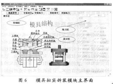 模具擬實拆裝模塊界面分為三個區域,即控制區、練習區和顯示區,如圖6所示。