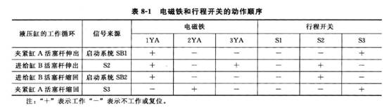 (2)表8-1為機械加工中心系統電磁鐵和行程開關的動作順序。