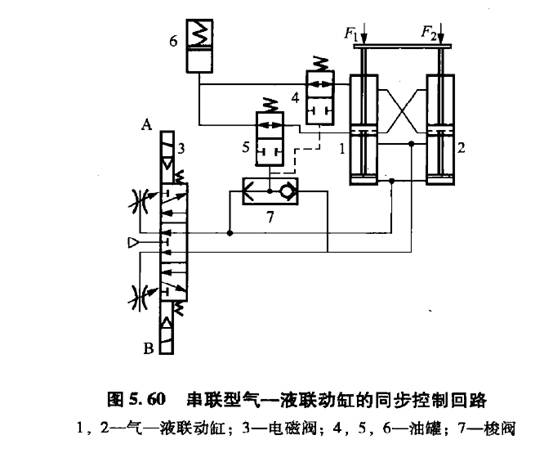 5. 2利用氣一液聯(lián)動缸的同步控制回路