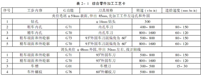 制定加工工藝路線,選擇刀具及切削用量,見(jiàn)表2- 1。