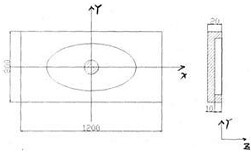 在一塊 1200mm @ 800mm @ 20mm的方板上加工如圖 2所示橢圓槽。其中該橢圓的長軸為 800mm、 短軸為 400mm。為了簡便我們只編寫加工上半部分的精加工程序 (假設(shè)橢圓與 X軸正半軸的交點(diǎn)為 A, 與 Y軸正半軸的交點(diǎn)為 B) , 所用刀具為 U40mm的立銑刀。